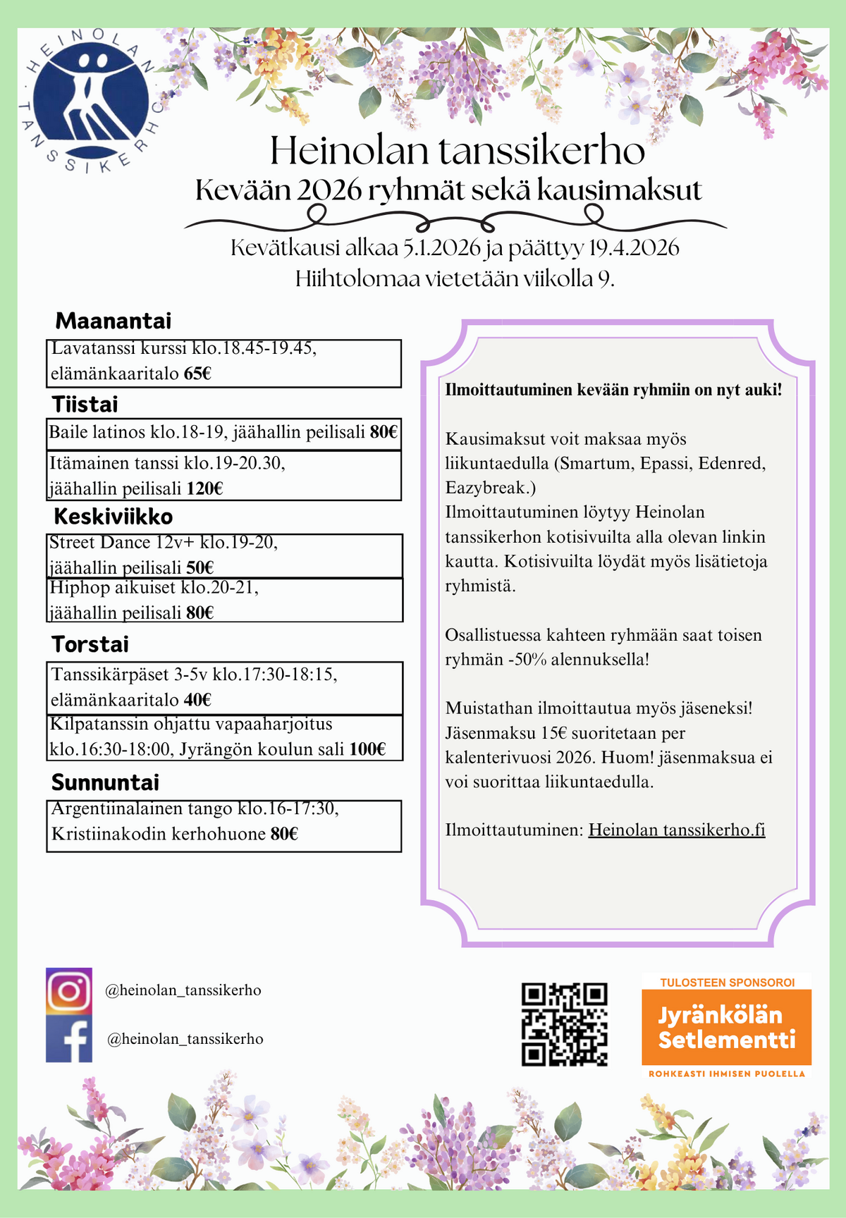 Jos haluat liittyä myöhemmin ota yhteyttä jasenvastaava@heinolantanssikerho.fi.