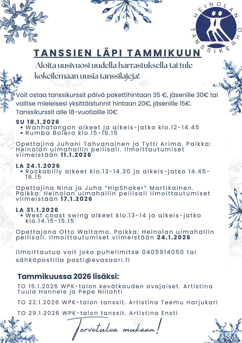 Ilmoittaudu viimeistään 11.1. Wanhan tangon kursseille, 17.1. Rockabilly kurssille tai 24.1. West Coast Swing kurssille.