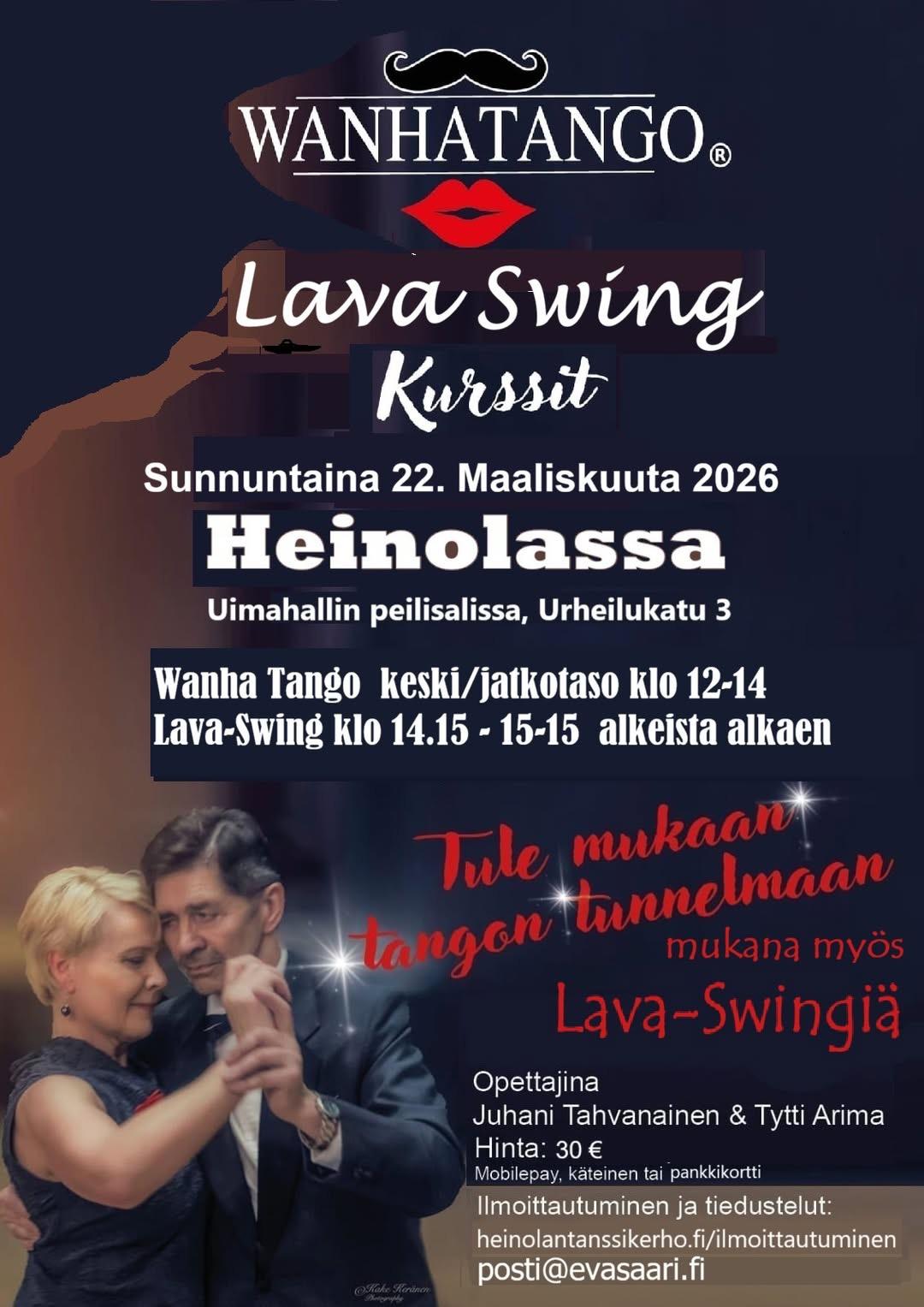 22.3. Wanhan Tangon keski/jatkotasot sekä Lava Swing alkeet.Ohjaajina Juhani Tahvanainen ja Tytti Arima.
